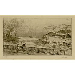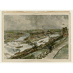 The Pittsburgh Prints from the Collection of Wesley Pickard, held by the Archives Service Center (ASC) at the University of Pittsburgh, contains 43 prints, including lithographs, etchings, watercolors, engravings, and periodical illustrations, that primarily date between 1843 and 1923 with a few created in the 1970s and early 1980s. The prints depict a variety of Pittsburgh landmarks, including bridges, downtown buildings, commercial and industrial establishments, and civic institutions that show the city before and during the period of industrial development in the nineteenth century.