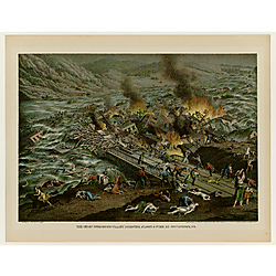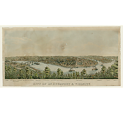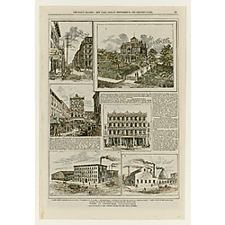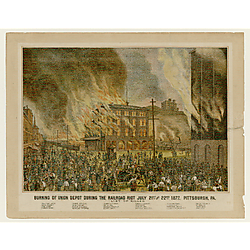 Many of the images show buildings that no longer exist, such as St. Paul's Cathedral, Pittsburgh Market and Court House, the old Iron City Brewery, and the Pittsburgh Female College, now Chatham University. Others include images of the Great Fire of 1845 and the burning of the Union Depot during the 1871 Railroad Strike. Additionally, there are bird's-eye views of downtown and the Point as well as regional sites, such as McKeesport and New Kensington, the Johnstown Flood, the Tobyhanna River Valley, Washington and Jefferson College, and the Western State Penitentiary. Many different artists are represented, including Nat Youngblood, Otto Krebs, S. V. Albee, and Karl Bodmer.