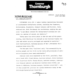 Labor Leaders representing thousands of members of southwestern PA unions, including the Teamsters, Boilermakers, Carpenters, Printing Trades, General Laborers and Painters, today endorsed Thornburgh for reelection