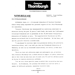Pittsburgh Federation of Teachers President Albert Fondy expressed his personal support of Thornburgh for Reelection