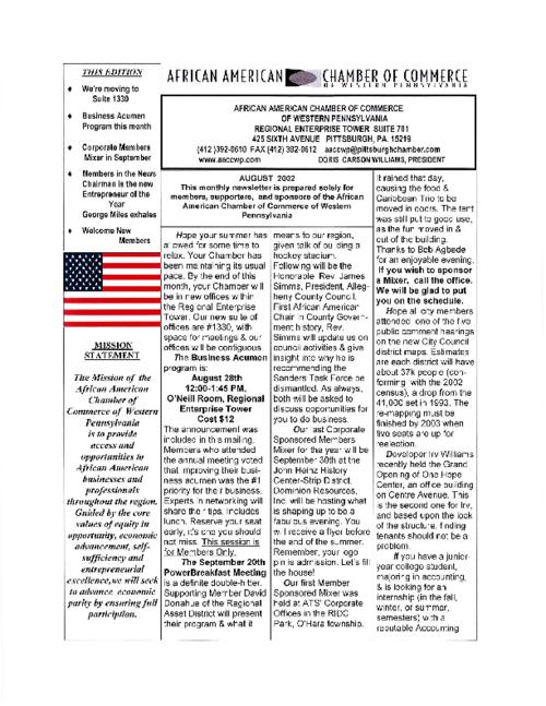 Guide to the African American Chamber of Commerce of Western Pennsylvania Digital Archive AACCWP